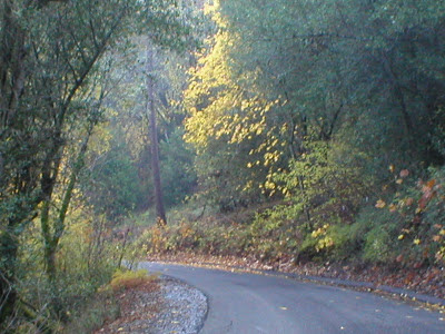 It was a beautiful sunny day~ crisp and smoky~just the way I like it. On my way home today, I decided to take the scenic route from Sutter Creek. I drove up Shake Ridge and cut over on Hale Road. It was inspirational. The leaves are coming down, and the damp forest smells sweetly of pine and cedar. There is a creek in the bottom of the canyon that I splash across, pausing to roll down my windows to listen to the music in the water. It is very quiet there, and the light is soft and misty.